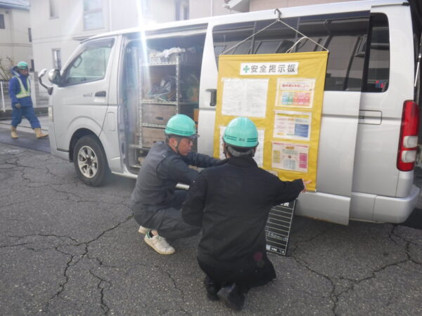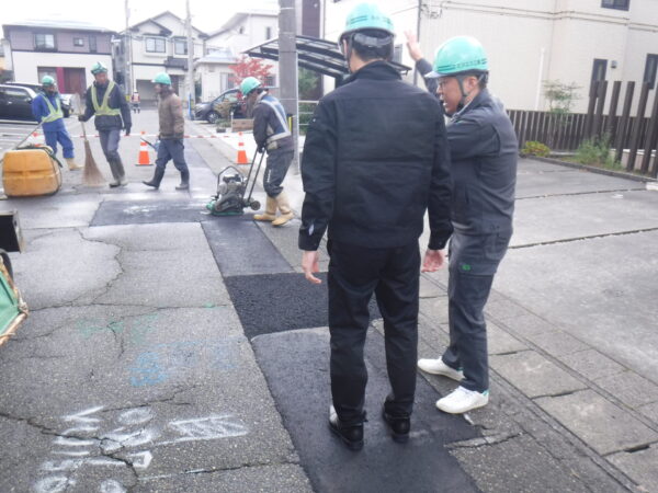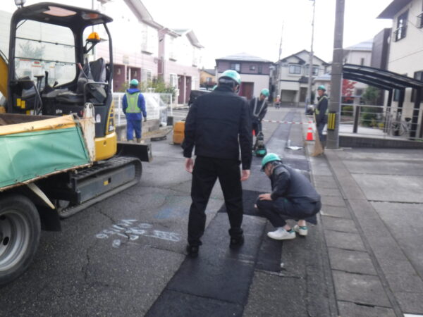 施工中の現場を見学させてもらいながら、工事の内容や安全面等についてお話しされました。